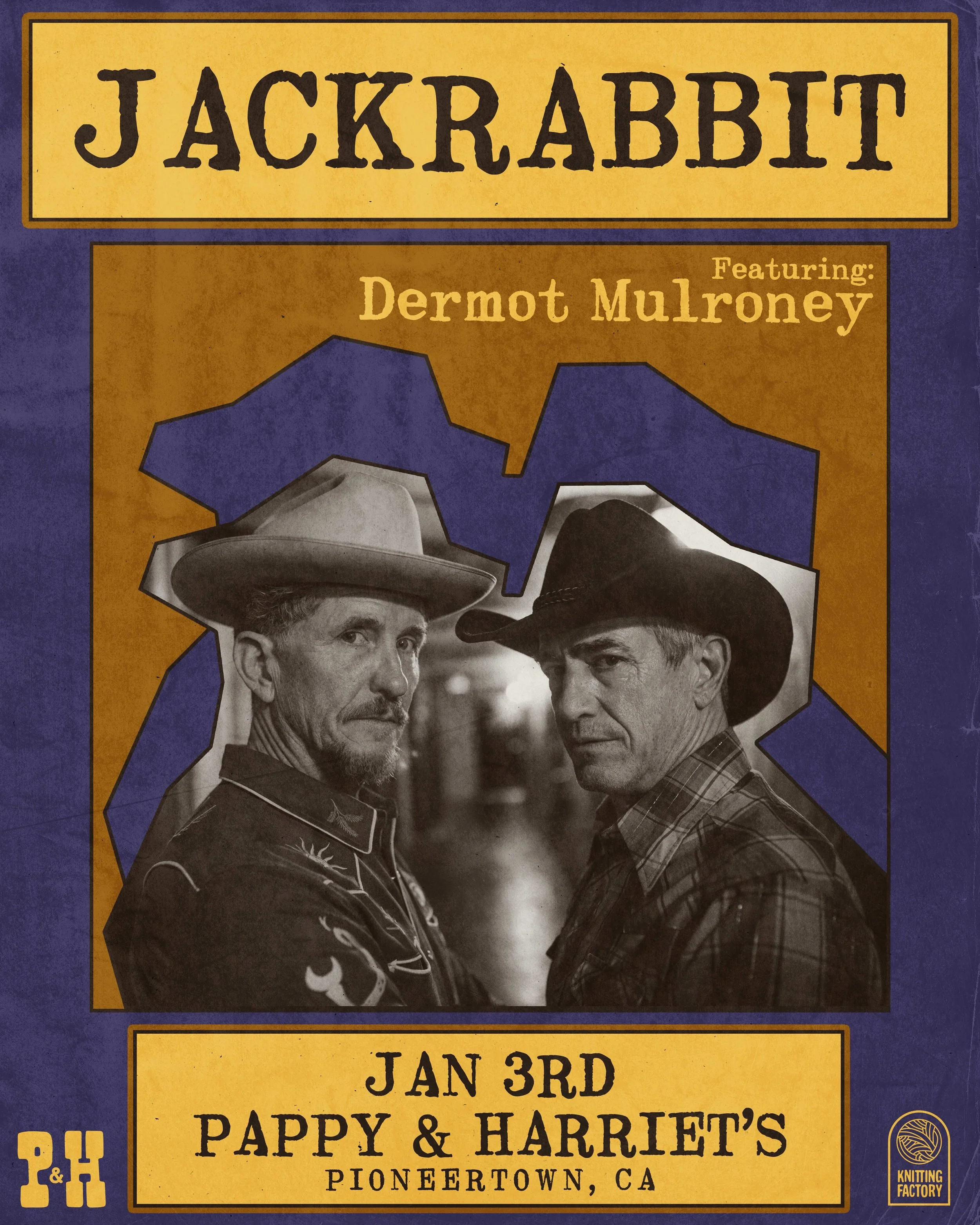 jackrabbit is THE band led by Dermot Mulroney and his brother Kieran Mulroney, combining heartfelt lyrics with aN authentic, Americana sound influenced by classic country and folk. With a blend of twangy guitars, and the Mulroney brothers' harmonies, jackrabbit. delivers a soulful and authentic country music experience.